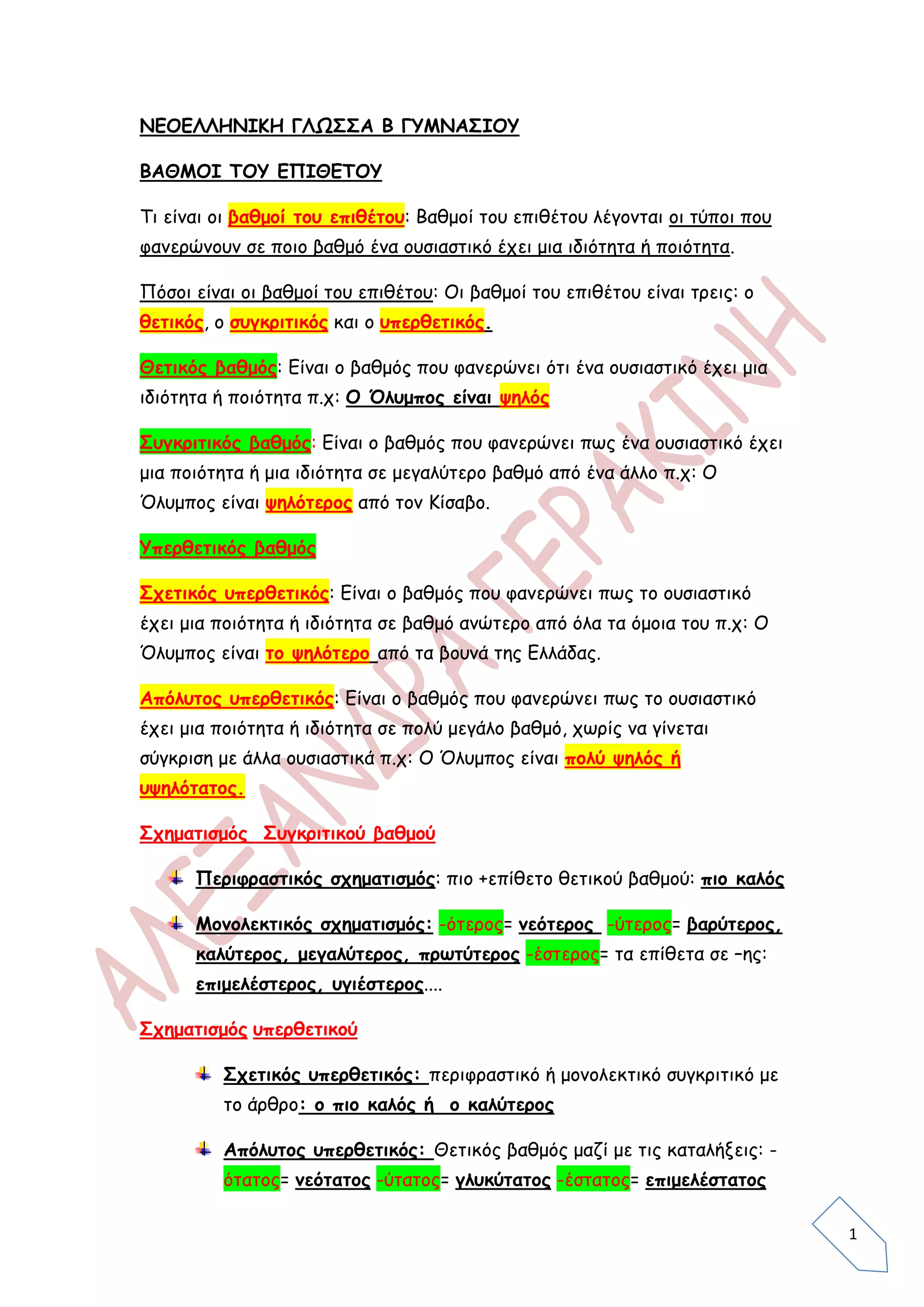 Τι είναι οι βαθμοί του επιθέτου: Βαθμοί του επιθέτου λέγονται οι τύποι που