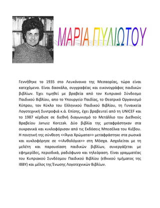 κατεχόμενο. Είναι δαςκάλα, ςυγγραφζασ και εικονογράφοσ παιδικών
