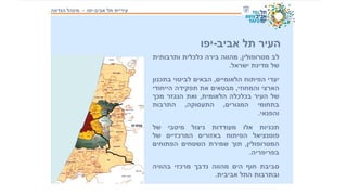 השלב התכנוני הסכמההאורבנית הסכמה האורבנית כפי שאנו רואים אותה מתייחסת הן לניתוחים שהוצגו במצגת , הן לשלב א , שהוצג ונמצא כיום בשלבי התהוות והן בהתאם להצעות שהוגשו לפרוייקט זה . הטכניון - מכון טכנולוגי לישראל הפקולטה לארכיטקטורה ובינוי ערים סמסטר חורף תשס " ט ערן יסודי 060778214 לימור גולדהבר 039485073 מוקד " מרינה " רצועת מלונות רצועת טיילת ופארק חופי חגורת תרבות ופנאי רקמת מגורים חיבור רח ' אבן - גבירול לרח ' איינשטיין והקניית אופי של שד ' תל אביבית לרחוב