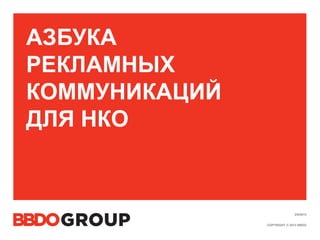 Документ является руководством по рекламным коммуникациям для НКО, предоставляя информацию о разработке эффективных стратегий взаимодействия с брендами. Он описывает ключевые понятия брендинга, коммуникационный цикл и роль агентств, а также дает рекомендации по выбору партнеров и реализации проектов. В документе также акцентируется внимание на важности долгосрочного сотрудничества и доверия в процессе рекламы.