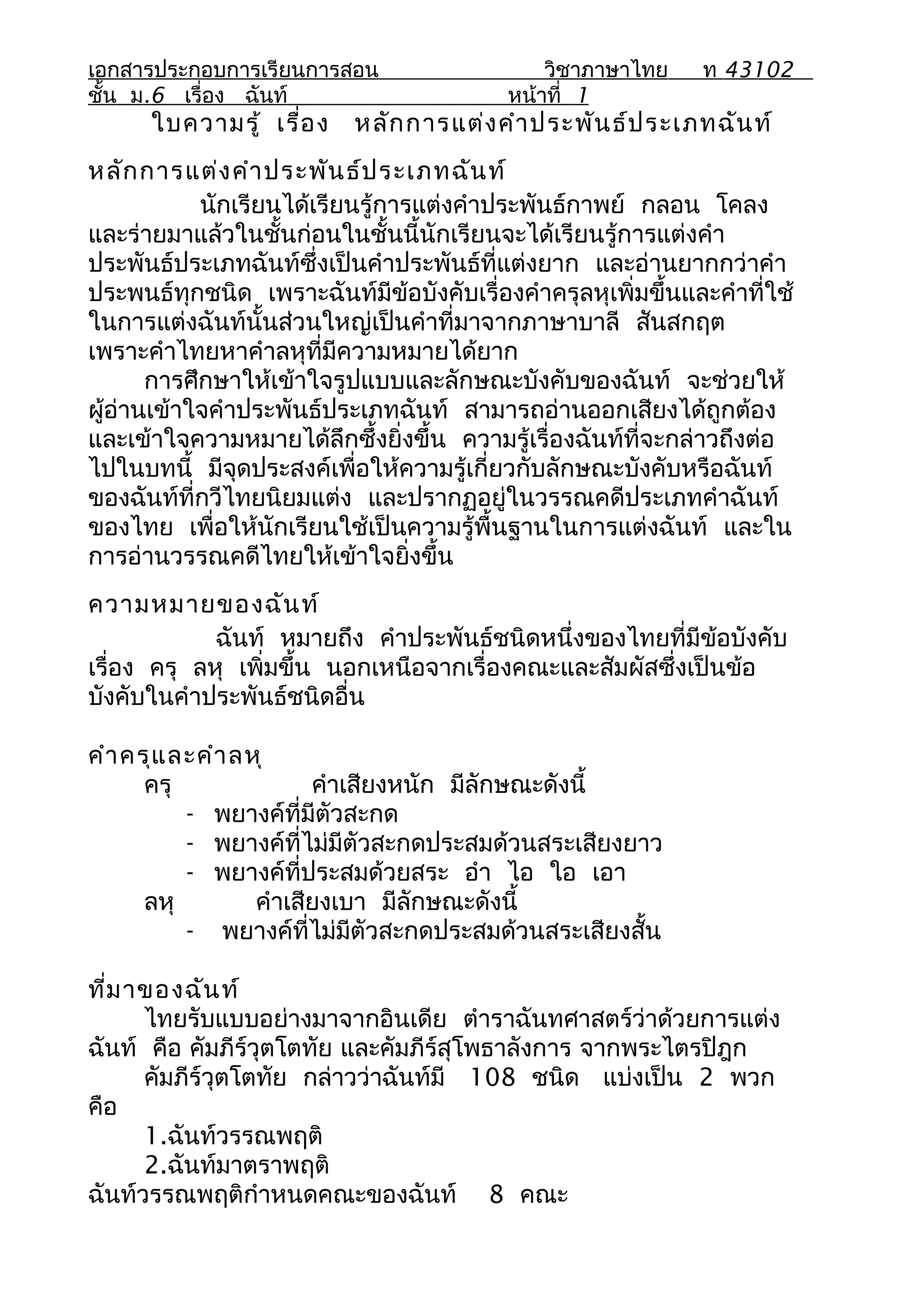 ชั้น ม.6 เรื่อง ฉันท์ หน้าที่ 1