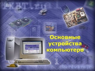 Документ описывает основные устройства компьютера и их функции, включая аппаратное и программное обеспечение. Основные компоненты касаются обработки, хранения, ввода и вывода информации, а также передачи данных через модемы и сети. Также упомянуты различия между персональными и глобальными компьютерными сетями.