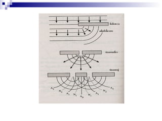 raction) เกิดจากคลื่นเคลื่อนที่ไปพบสิ่งกีดขวาง ทำาให้คลื่นส่วนหนึ่งอ้อมบริเวณของสิ่งกีดขวาง
