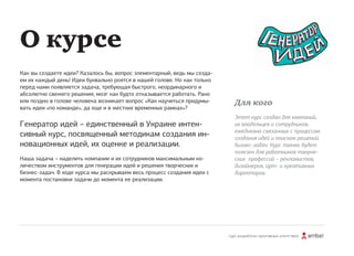 Курс по созданию инновационных идей предназначен для компаний и их сотрудников, которые хотят научиться генерировать идеи в условиях жестких временных рамок. Он включает в себя методики постановки задач, генерации, оценки и реализации идей, а также практические упражнения для развития креативности. Программа курса адаптируется под конкретные запросы и задачи участников, обеспечивая высокое качество обучения.