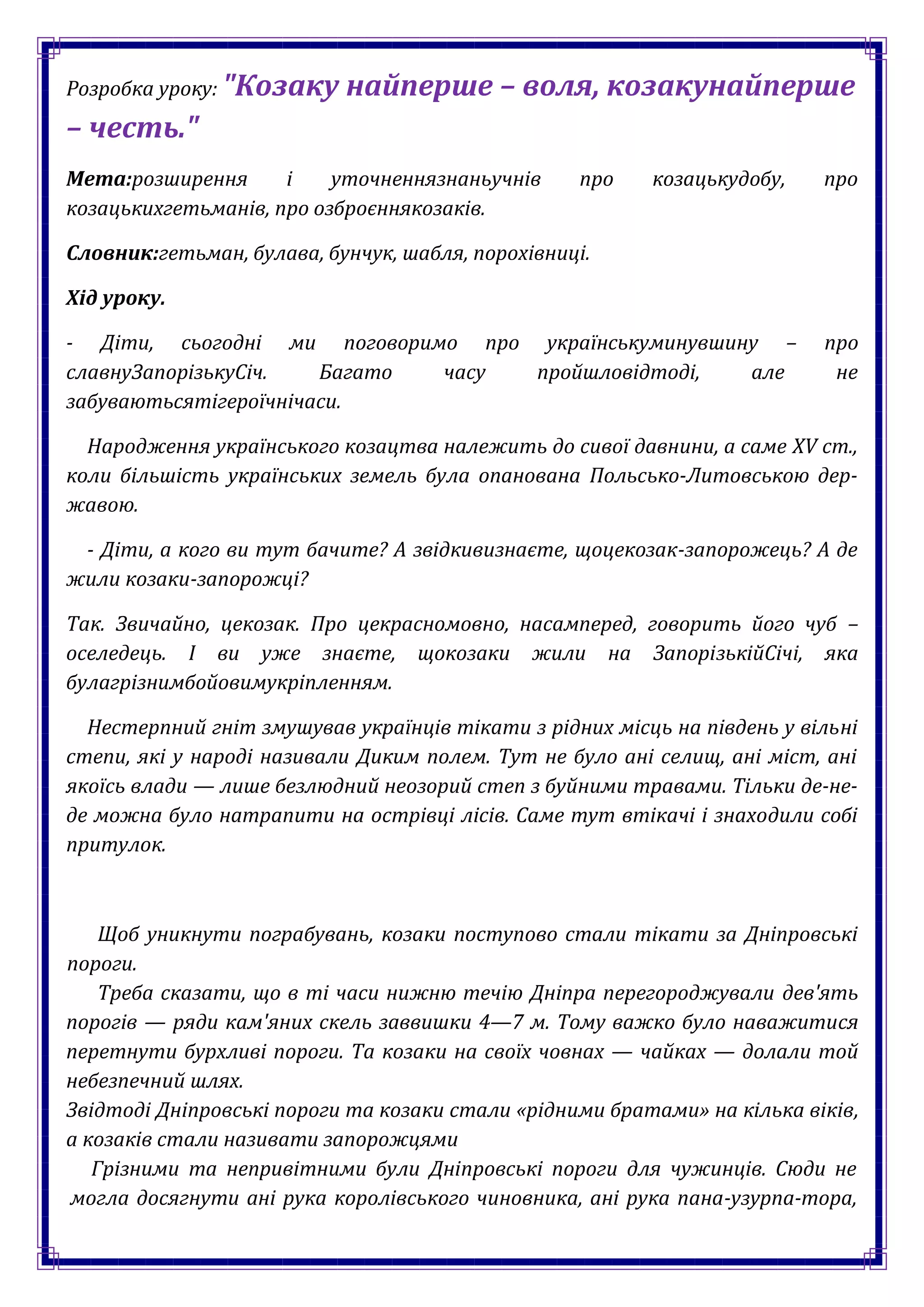 Розробка уроку: "Козаку найперше – воля, козакунайперше