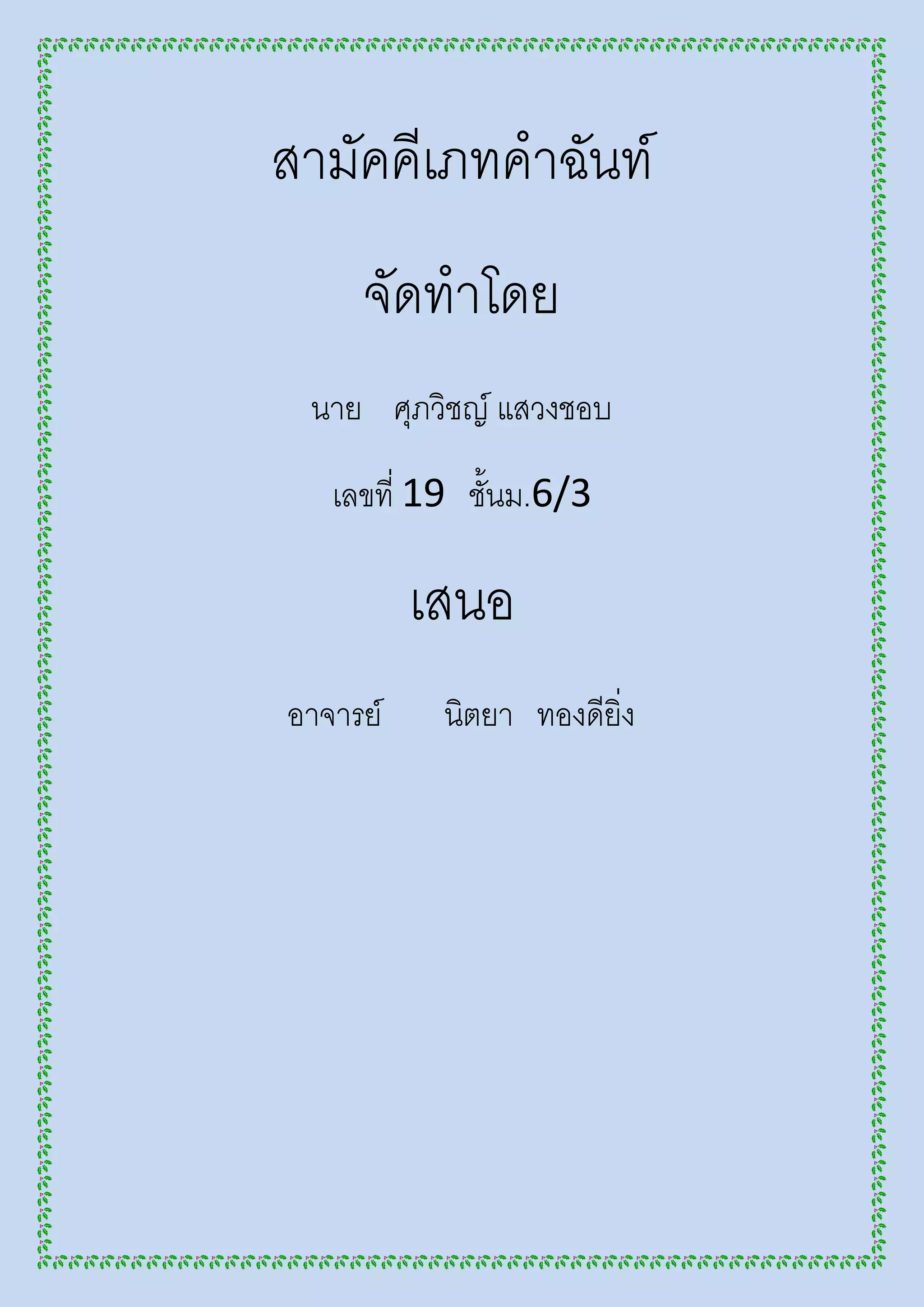 จัดทาโดย นาย ศุภวิชญ์ แสวงชอบ เลขที่ 19 ชั้นม.6/3 เสนอ อาจารย์ นิตยา ทองดียิ่ง