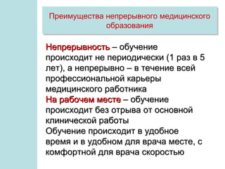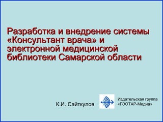 Документ описывает разработку и внедрение системы 'консультант врача' и электронной медицинской библиотеки в Самарской области, акцентируя внимание на преимуществах непрерывного медицинского образования для врачей. Основное внимание уделяется источникам информации, необходимым для принятия клинических решений, а также значимости клинической информации и требованиям к её содержанию. Также подчеркивается цель системы - повышение качества медицинской помощи, путем обеспечения врачей доступом к актуальной и достоверной информации.