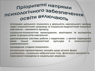інтеграцію шкільного психолога у діяльність навчального закладу