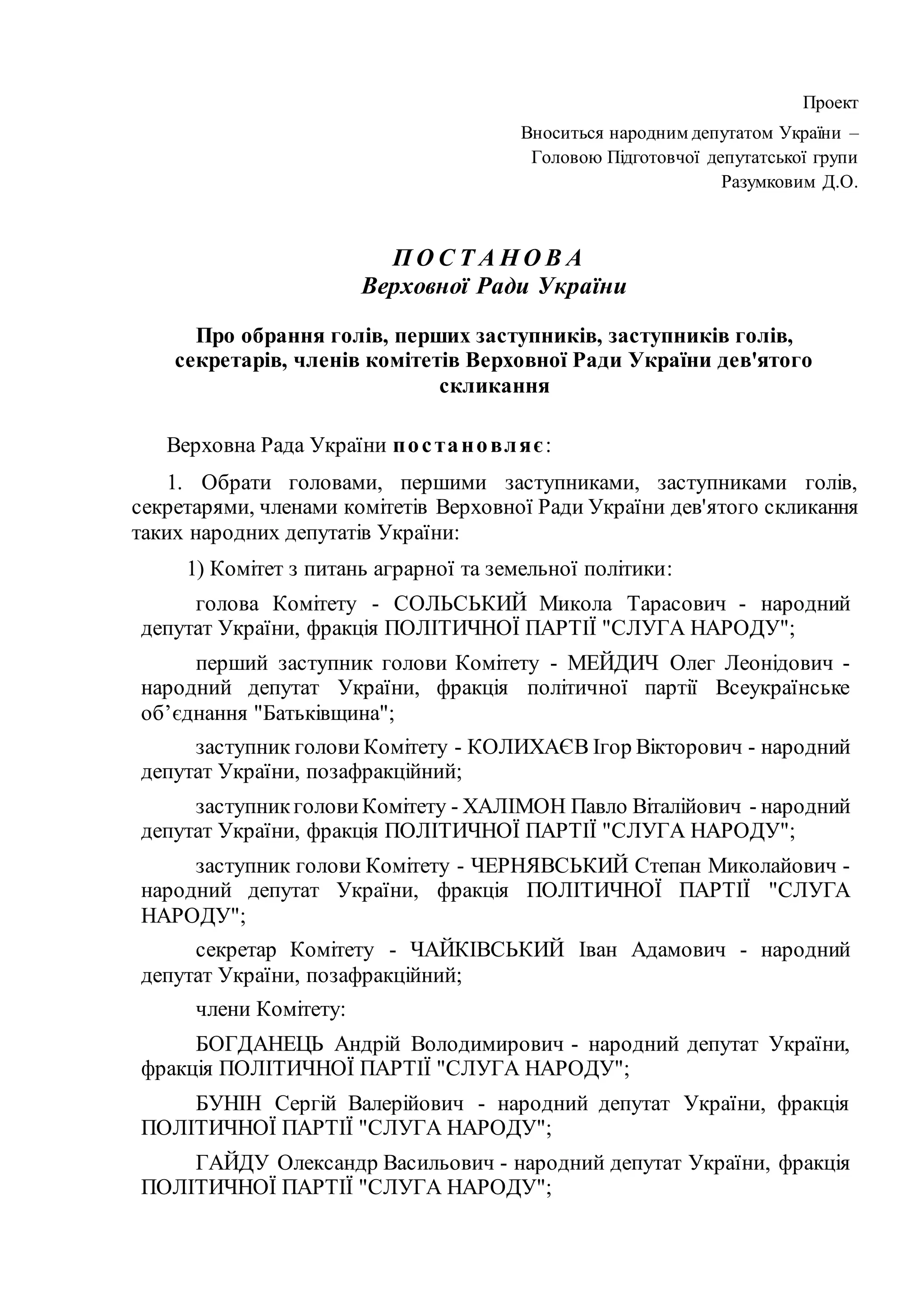 секретарів, членів комітетів Верховної Ради України дев'ятого