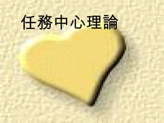 任務中心理論主張個人問題源於環境及資源限制,並強調社會學、溝通、系統及認知理論的重要性。該理論強調有效的問題解決過程,並需經過問題探索、契約訂立、任務規劃等多個階段,以幫助案主克服困難。透過短期介入和結構化的步驟,任務中心理論旨在提高案主的問題解決能力及自我效能。