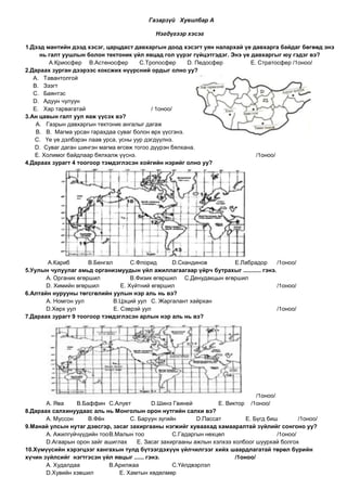 Газарзүйн тест 2009 он А хувилбар DOCX