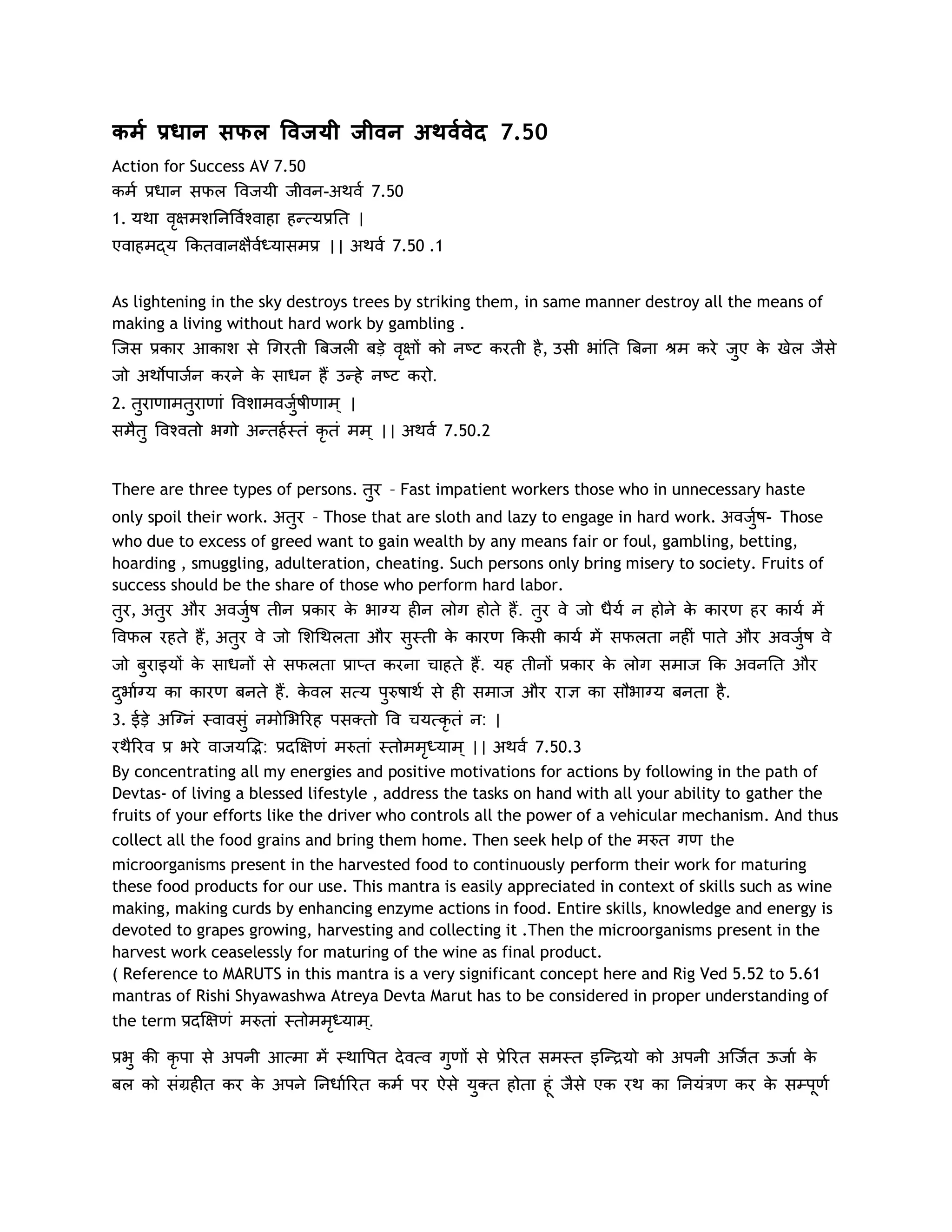 ( Reference to MARUTS in this mantra is a very significant concept here and Rig Ved 5.52 to 5.61
