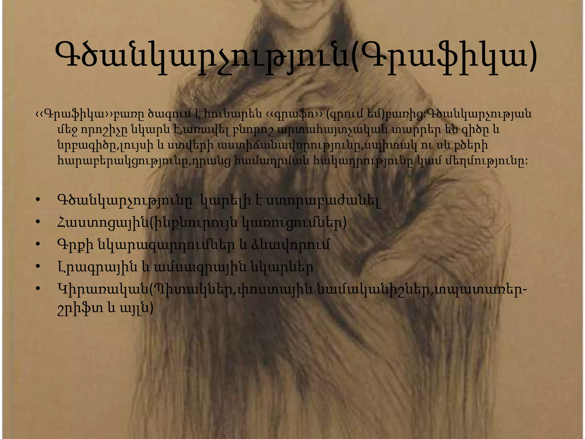 • Գծանկարչությունը կարելի է ստորաբաժանել