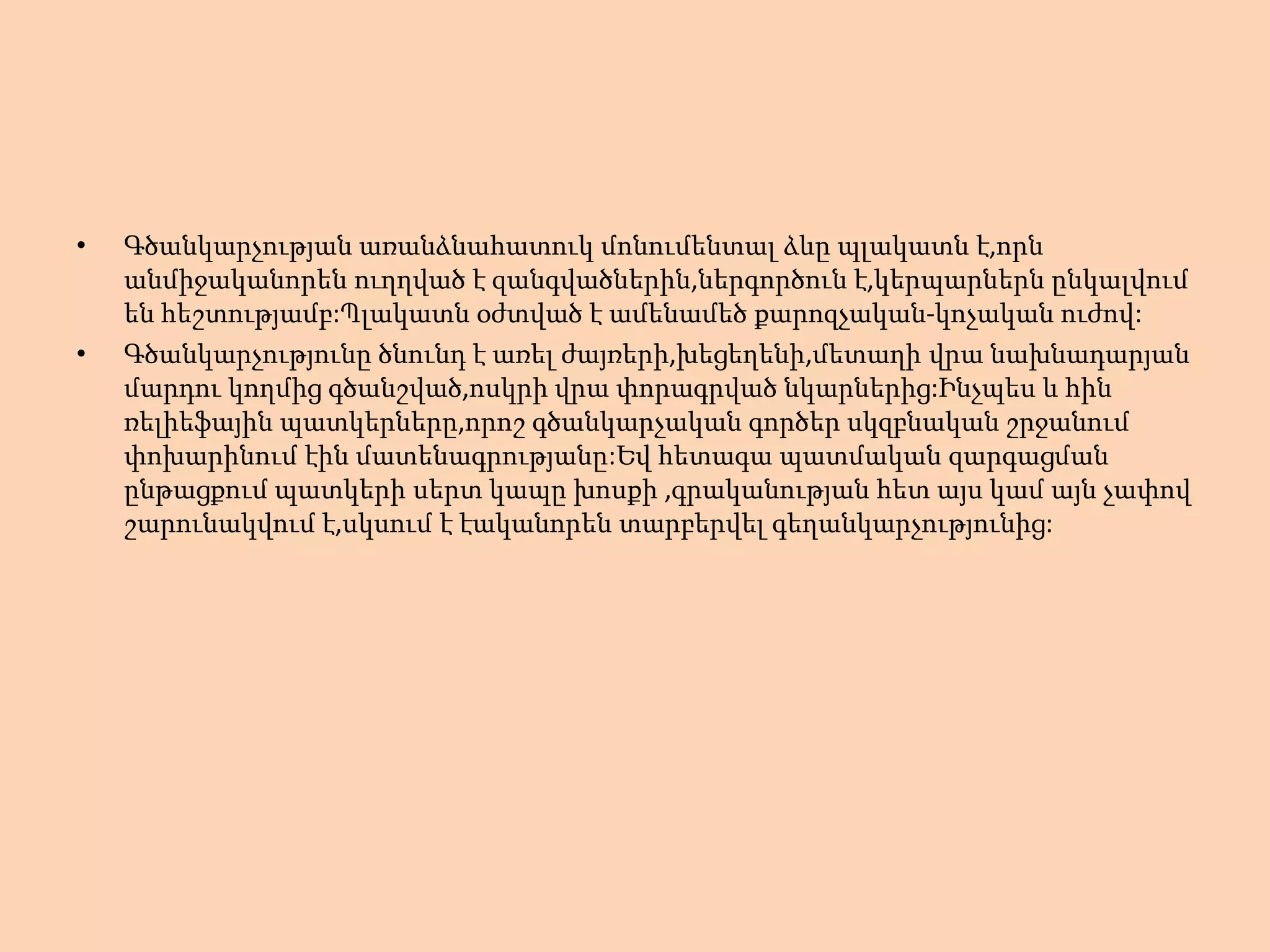 • Գծանկարչության առանձնահատուկ մոնումենտալ ձևը պլակատն է,որն