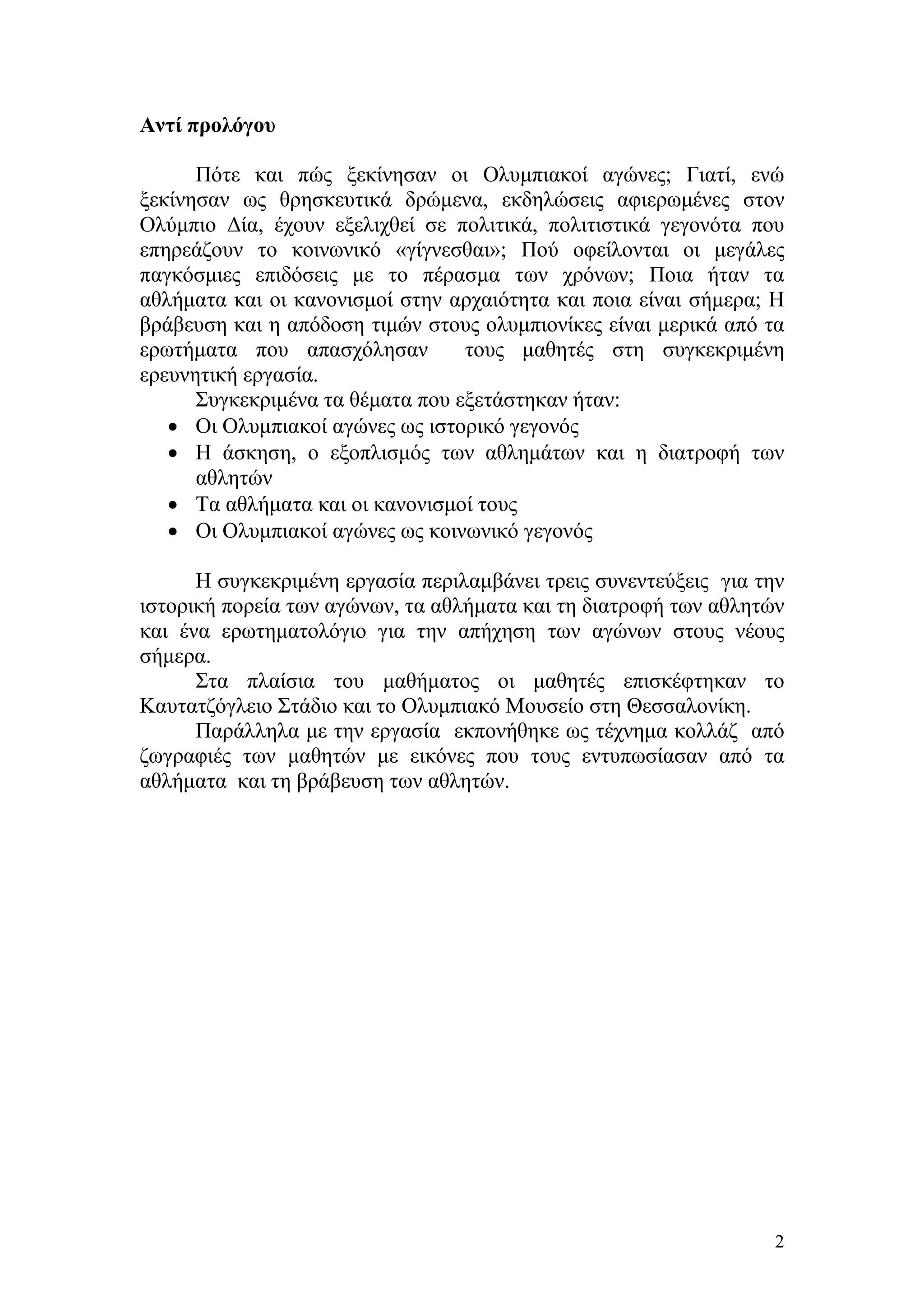 4.Βραβεία και τιμές Ολυμπιονικών ………………….σελ.15