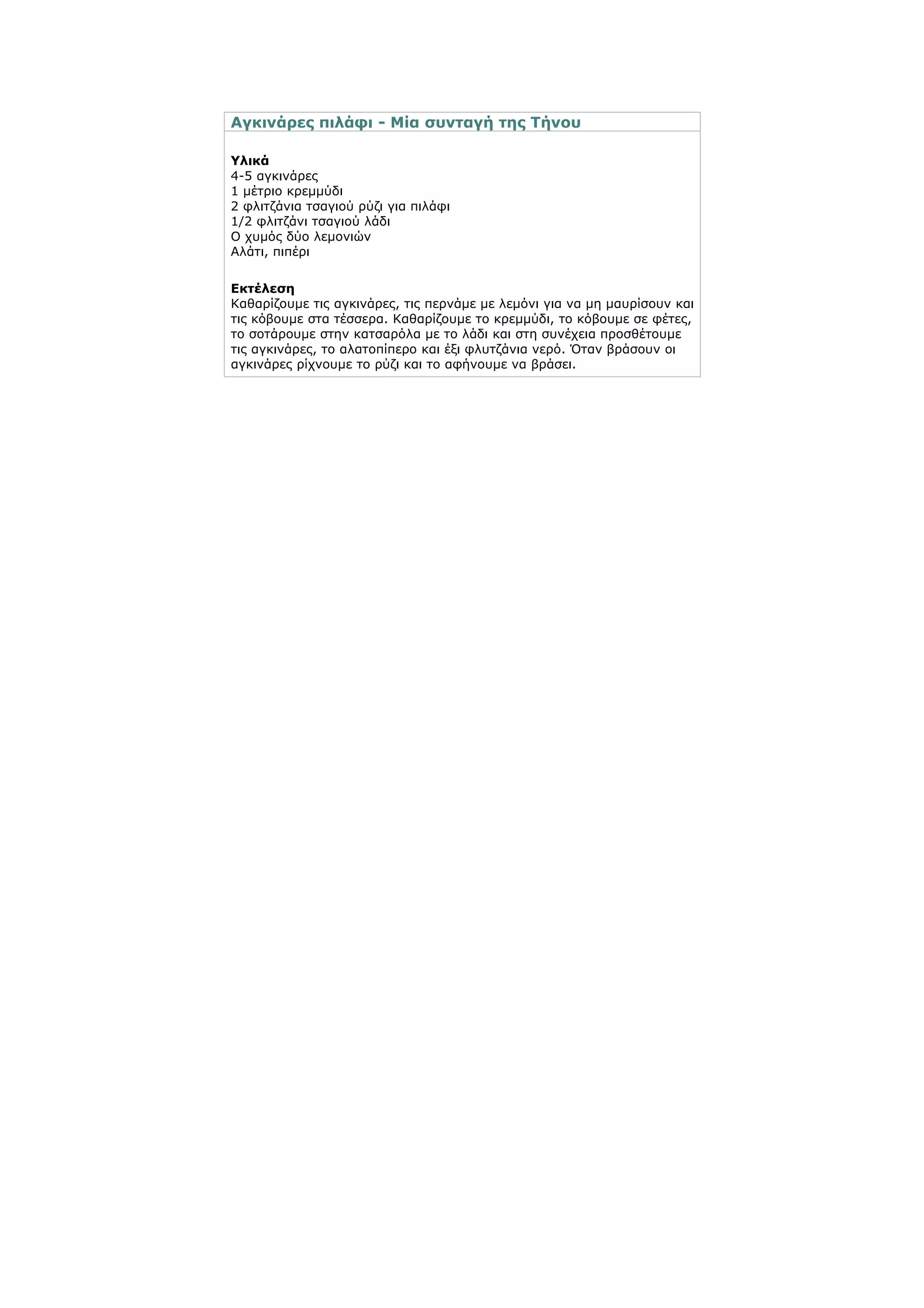 Αγκινάρες πιλάφι -Μία συνταγή της Τήνου