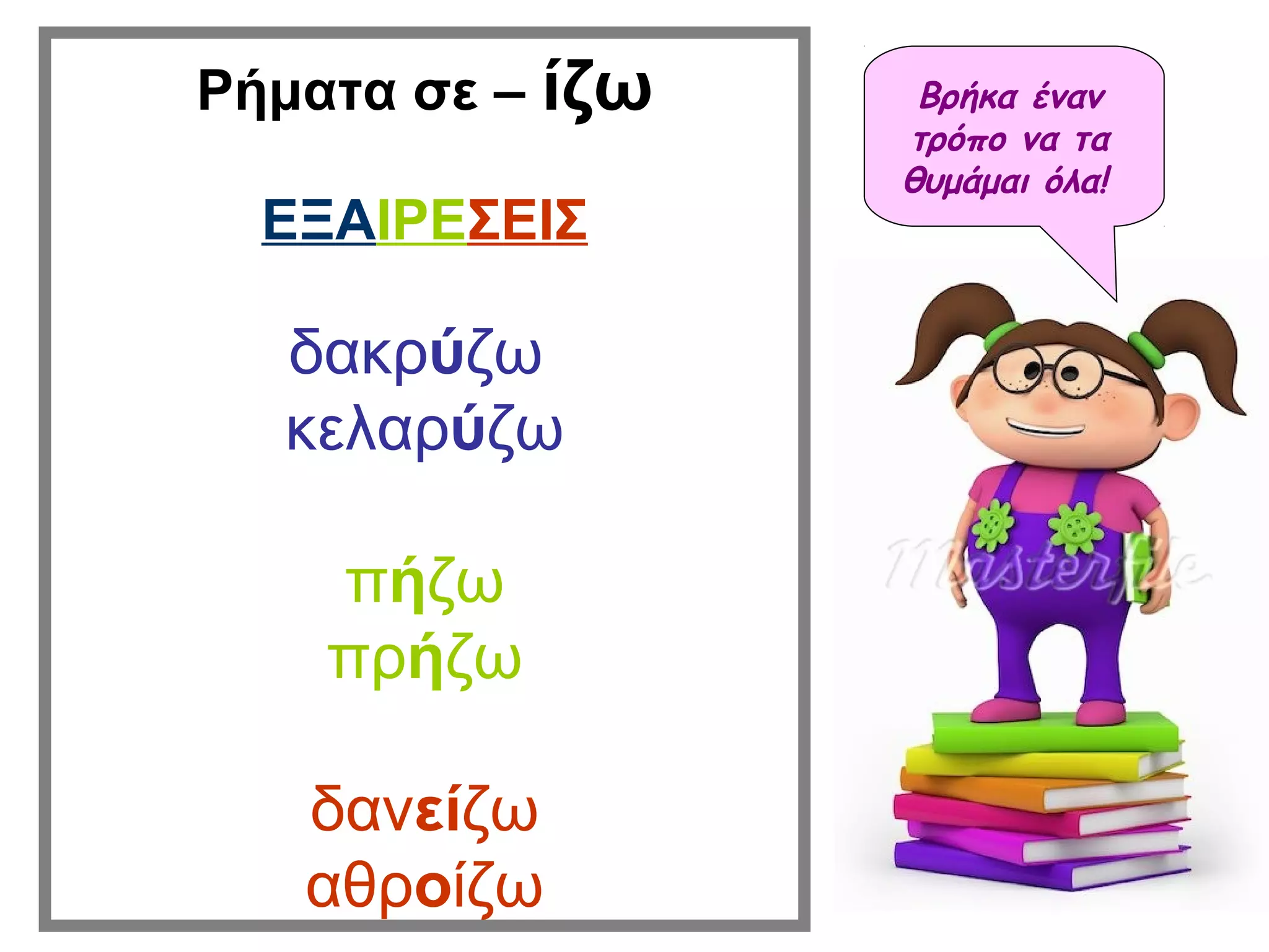 ίζω Βρήκα έναν τρόπο να τα θυμάμαι όλα! ΕΞΑΙΡΕΣΕΙΣ δακρύζω κελαρύζω πήζω πρήζω δανείζω αθροίζω