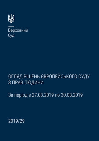 Огляд рішень Європейськогосуду з прав людини. Рішення за період з 27.08.2019 по 30.08.2019 /