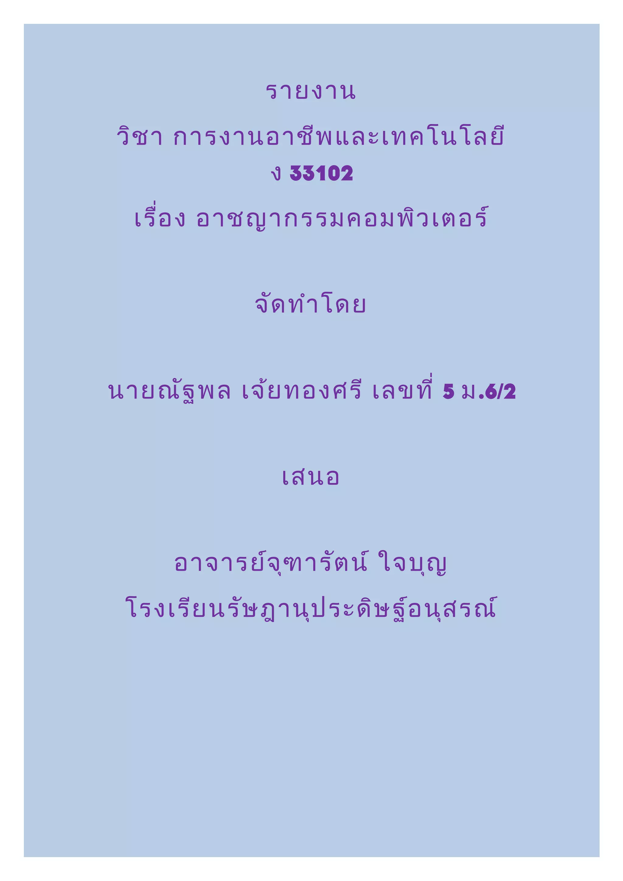งานอาชีพ และเทคโนโลยี ง 33102 รายงาน