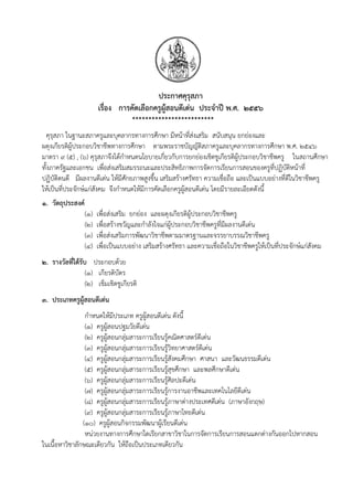 หลักเกณฑ์และวิธีการดำเนินการคัดเลือกผู้ประกอบอาชีพทางการศึกษาเพื่อรับรางวัลหน...
