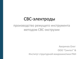 Документ описывает инновационный метод производства электродов для режущих инструментов с использованием технологии свс-экструзии, позволяющий значительно увеличить износостойкость инструментов при снижении их себестоимости. Реализация данного метода представляет собой решение проблемы износа и необходимости частой замены инструмента, что, в свою очередь, может помочь снизить производственные издержки и повысить конкурентоспособность компаний. Приведены данные о патентах, экономии затрат и планы по дальнейшему развитию бизнеса.