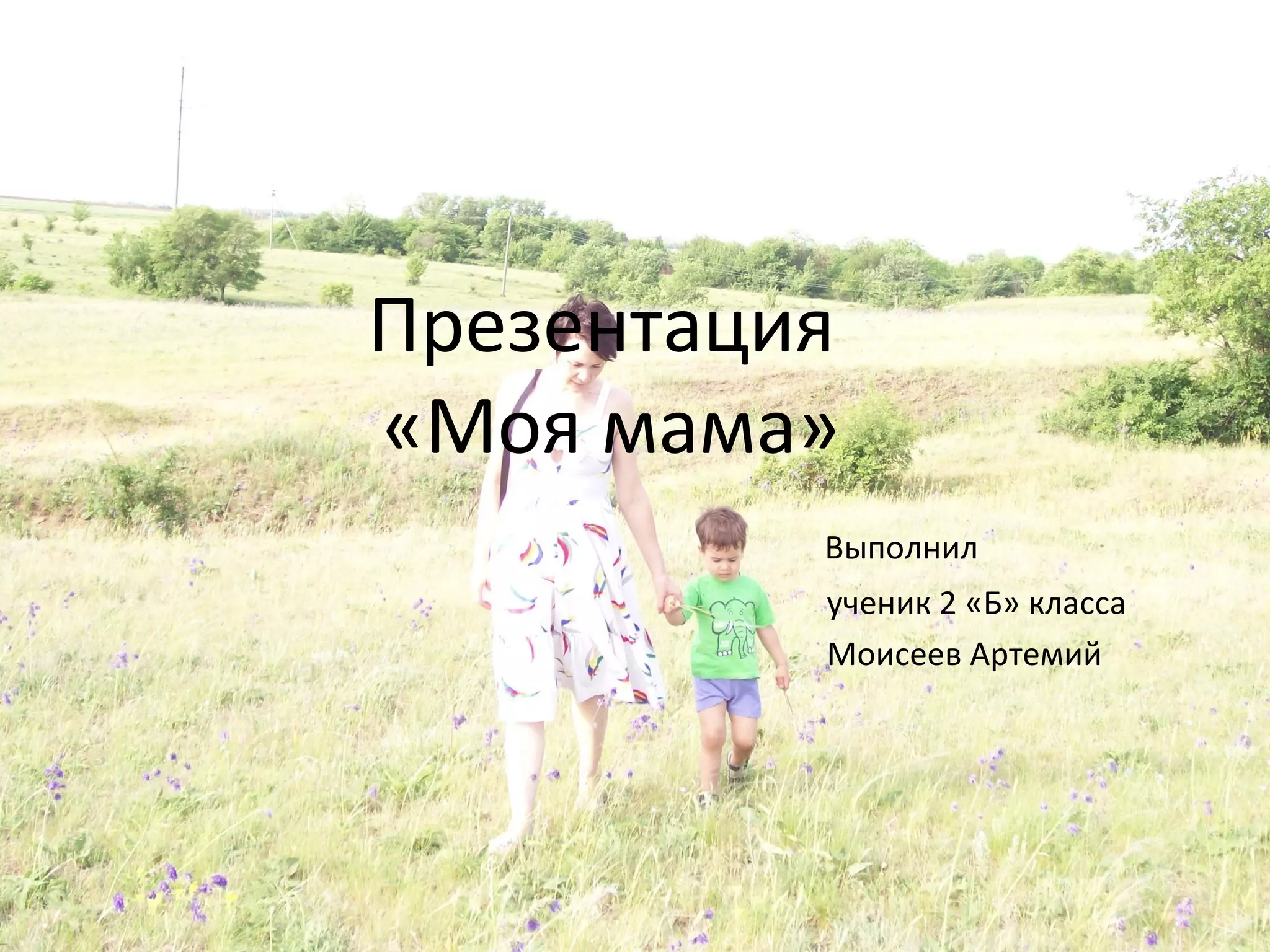 Презентация ученика 2 'б' класса Моисеева Артемия посвящена его маме, которую он считает лучшей. Он описывает ее поддержку и заботу, а также их совместные моменты радости и шалости. В документе подчеркивается любовь и восхищение автора к своей маме.