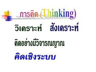Authentic learning การเรียนรูที่แทจริง Mental model building สั่งสมประสบการณใหม Internal motivation แรงจูงใจ Multiple Intelligence ความฉลาดแตละบุคคล Social Learning การเรียนรูเปนกิจกรรมทางสังคม