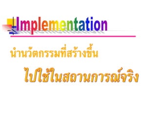ั ิ การเรยนการสอน ี ประเภทของนวตกรรมสอ ั ่ื บทเรียนอิเล็กทรอนิกส (Courseware) เนื้อหาดิจิทัล (Digital Content) สื่อมัลติมีเดียระบบเรียนรูดวยตนเอง สื่อการสอนลักษณะ PowerPoint คอมพวเตอรชวยสอน ิ