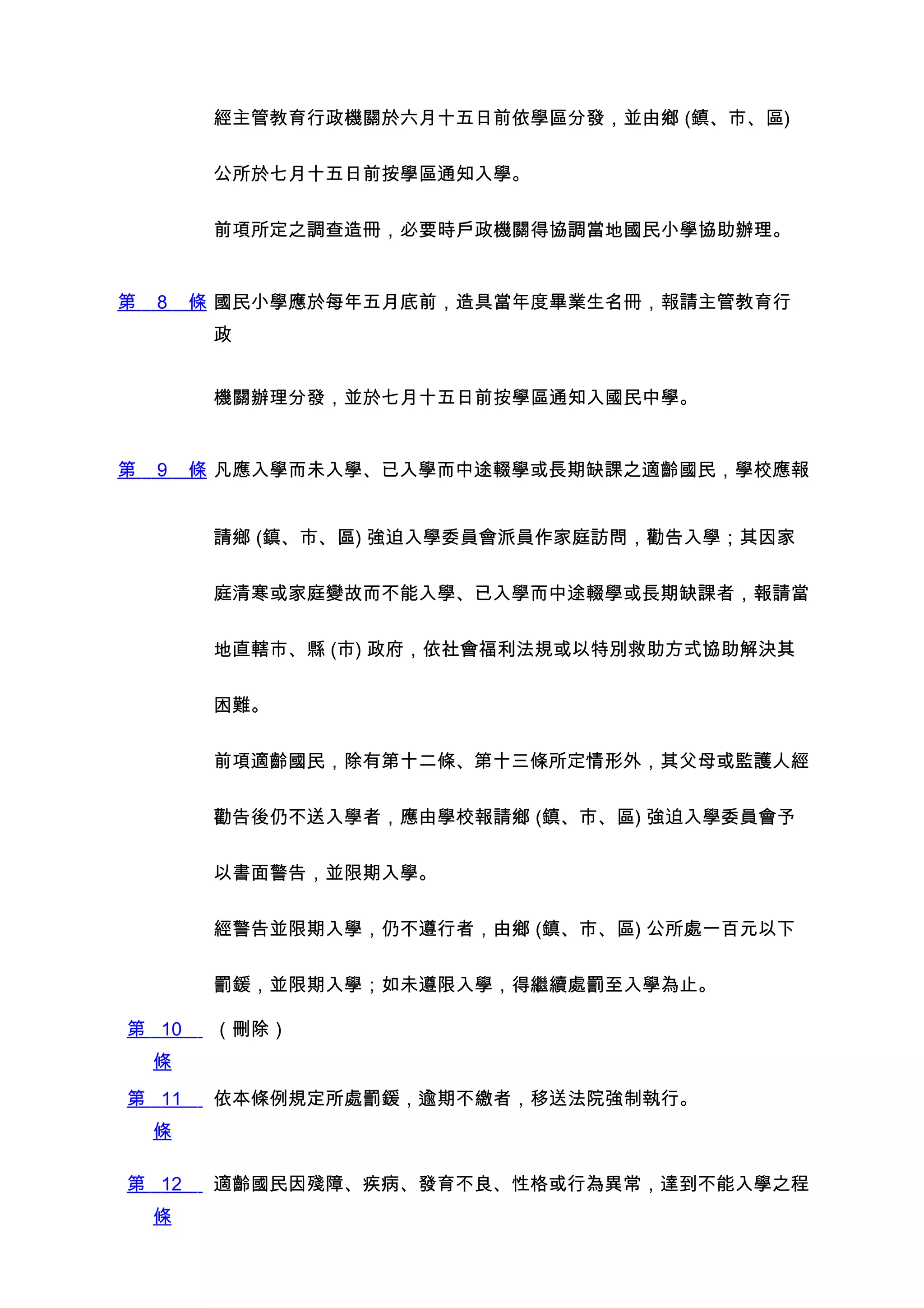 20181011教育部法條:「強迫入學條例」第12條修正草案