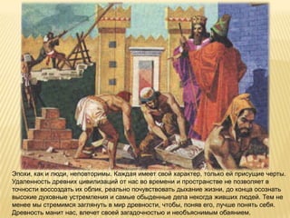 Презентация ученика 4 «А» класса исследует древние цивилизации и их уникальные черты. Несмотря на удаленность во времени, стремление понять эти культуры помогает глубже осознать человеческую природу. Особое внимание уделяется цивилизациям юго-восточной Азии, Японии и новому свету, показывающим развитие человеческого общества.