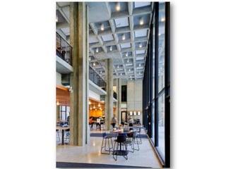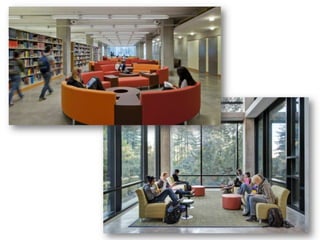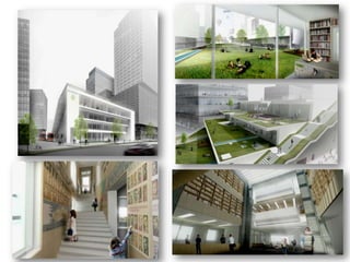 Документ содержит обзор современных тенденций в дизайне и зонировании библиотек, рассматривая их эволюцию от традиционных форматов к экологически устойчивым и технологически современным пространствам. Подробно описываются примеры библиотек по всему миру, подчеркивающих важность интеграции новых технологий и удобства для посетителей. Кроме того, упоминаются планы модернизации известных библиотек, таких как Нью-Йоркская публичная библиотека, с акцентом на улучшение доступа и взаимодействия с пользователями.