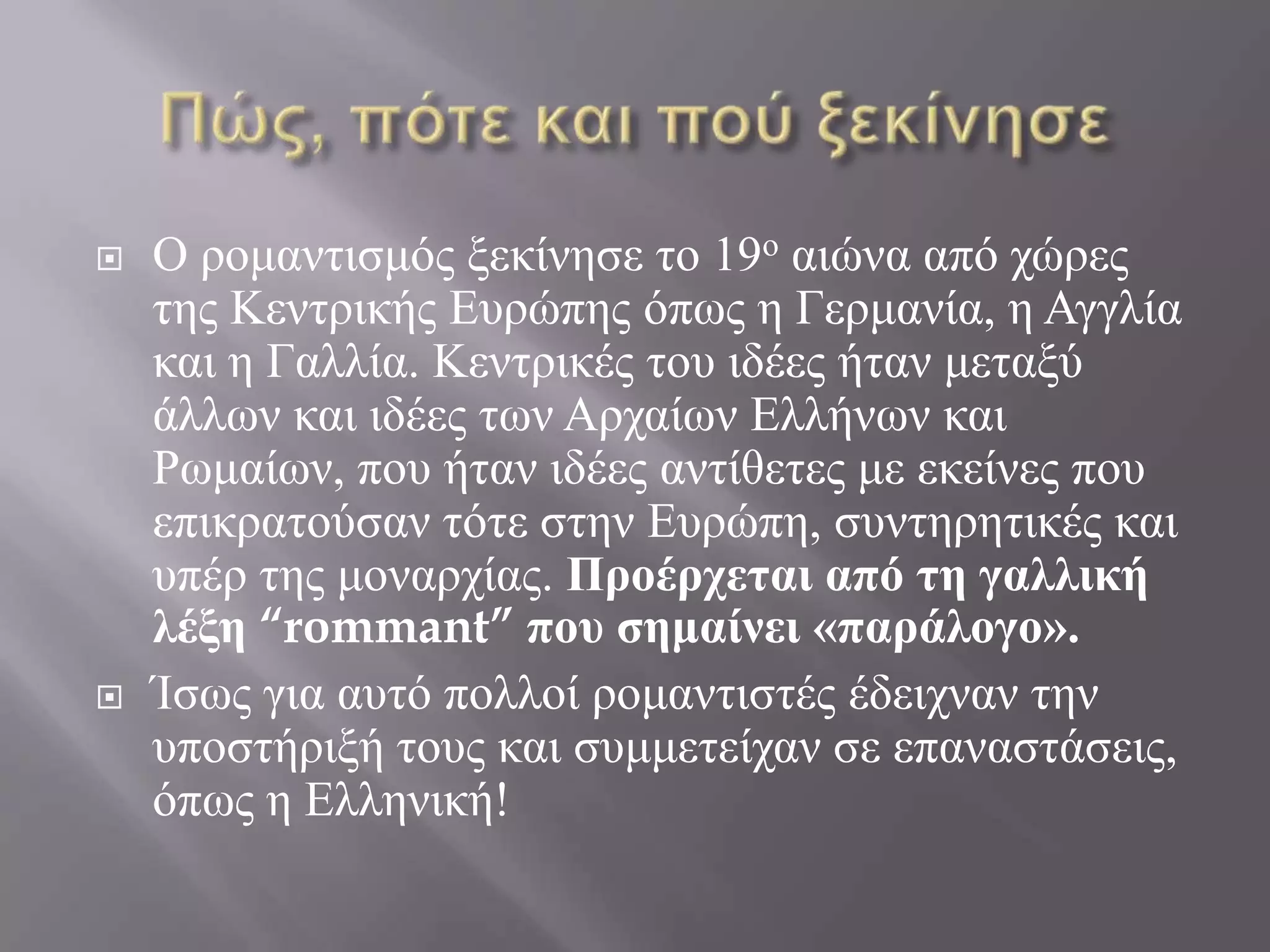 H δσγξαθηθήηνπ Ρνκαληηζκνύ ζηεξίδεηαη
