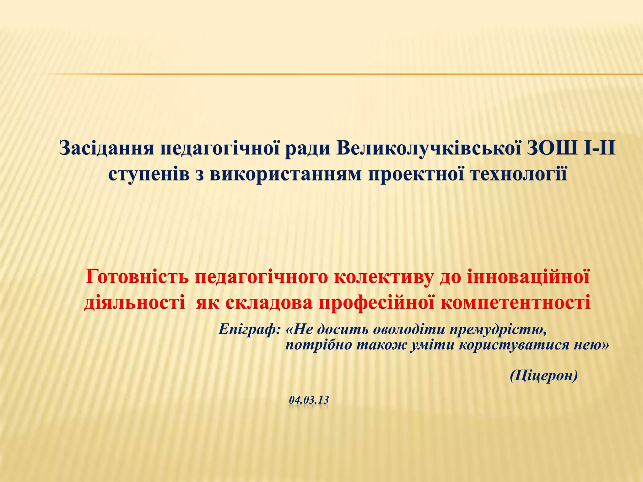 Засідання педагогічної радиВеликолучківської ЗОШ І-ІІ