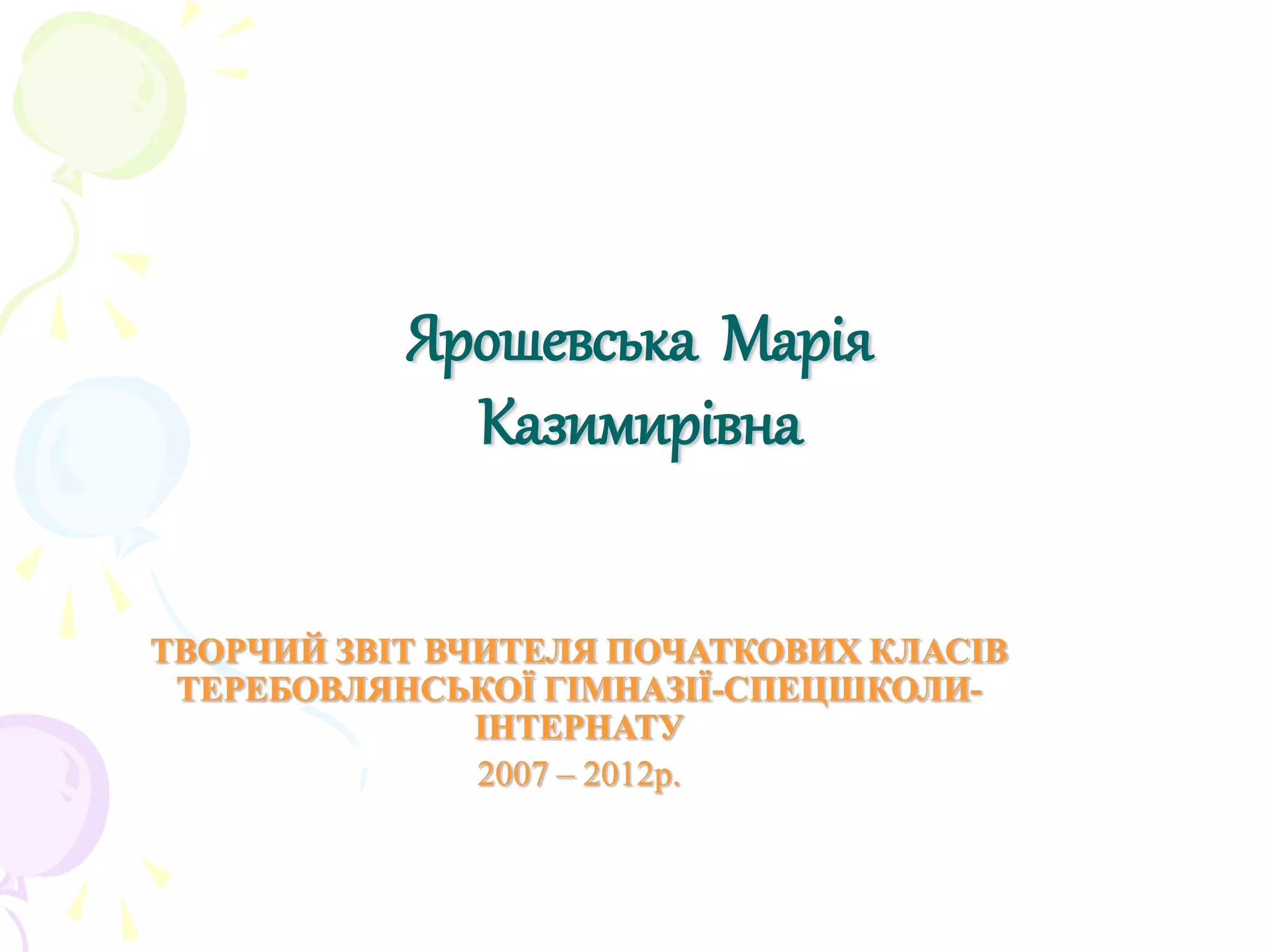 ТВОРЧИЙ ЗВІТВЧИТЕЛЯ ПОЧАТКОВИХ КЛАСІВ