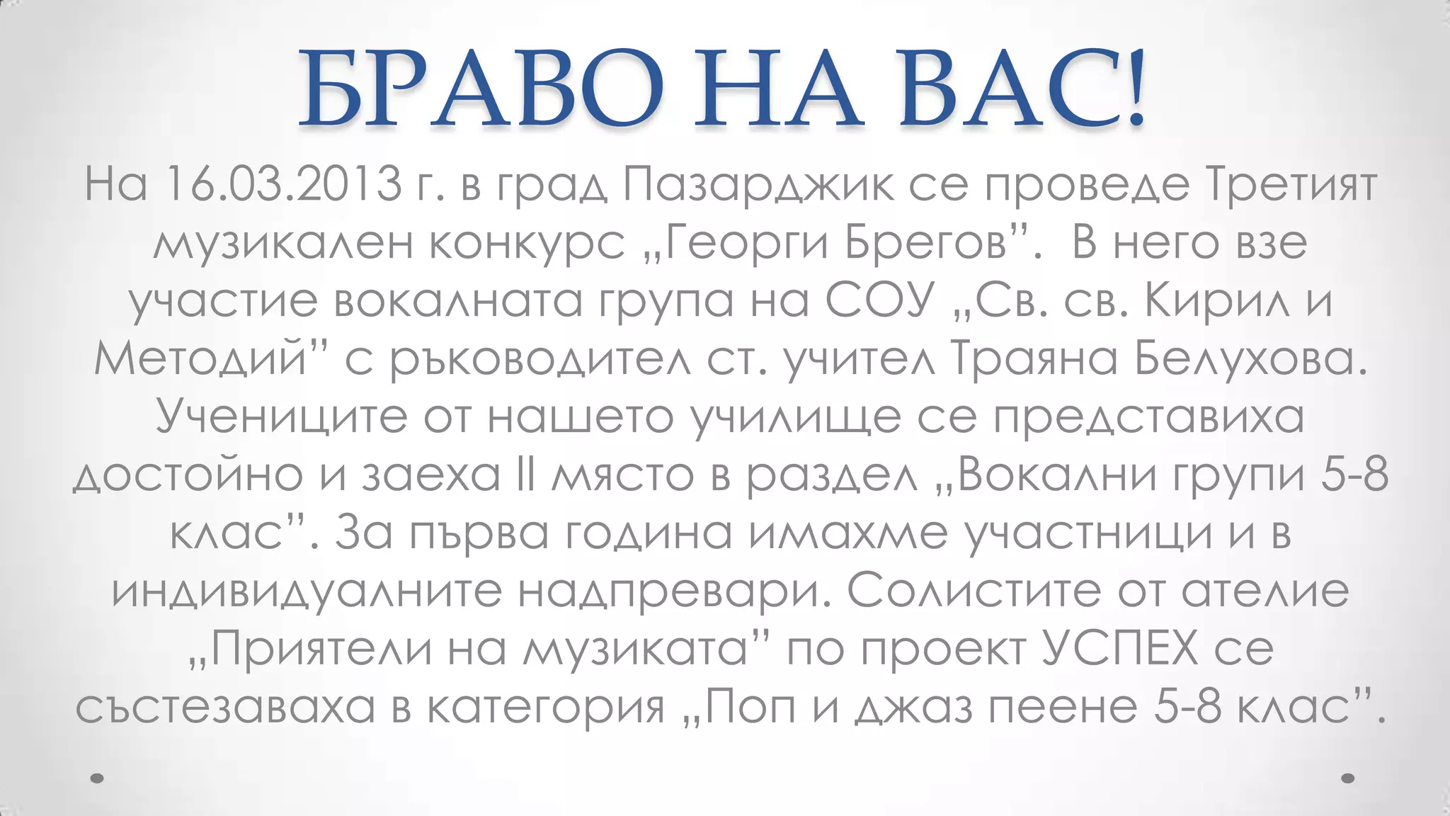клас взе ІІ награда. Деси Грахова от 6а клас се