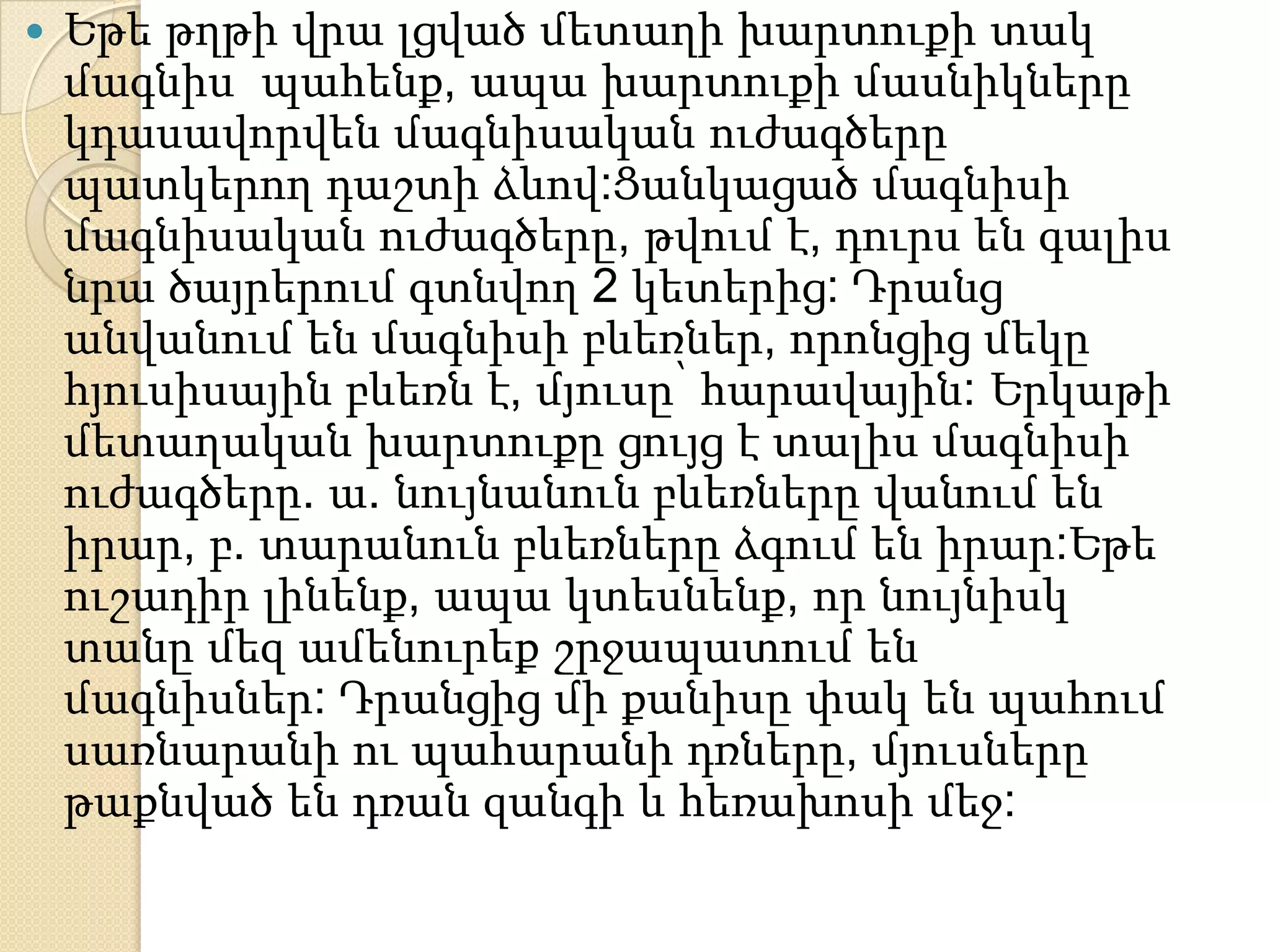 Մագնիսական դաշտի մասին