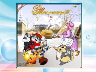 Документ является планом урока для 3 класса на тему «традиции русского праздника масленица», в котором описываются песни, танцы и обычаи, связанные с праздником. Упоминаются различные аспекты Масленицы, такие как еда, игра и музыка, а также предлагаются видеофайлы для дополнительного восприятия материала. В конце подчеркивается, что масленица — это время радости и веселья после трудов.