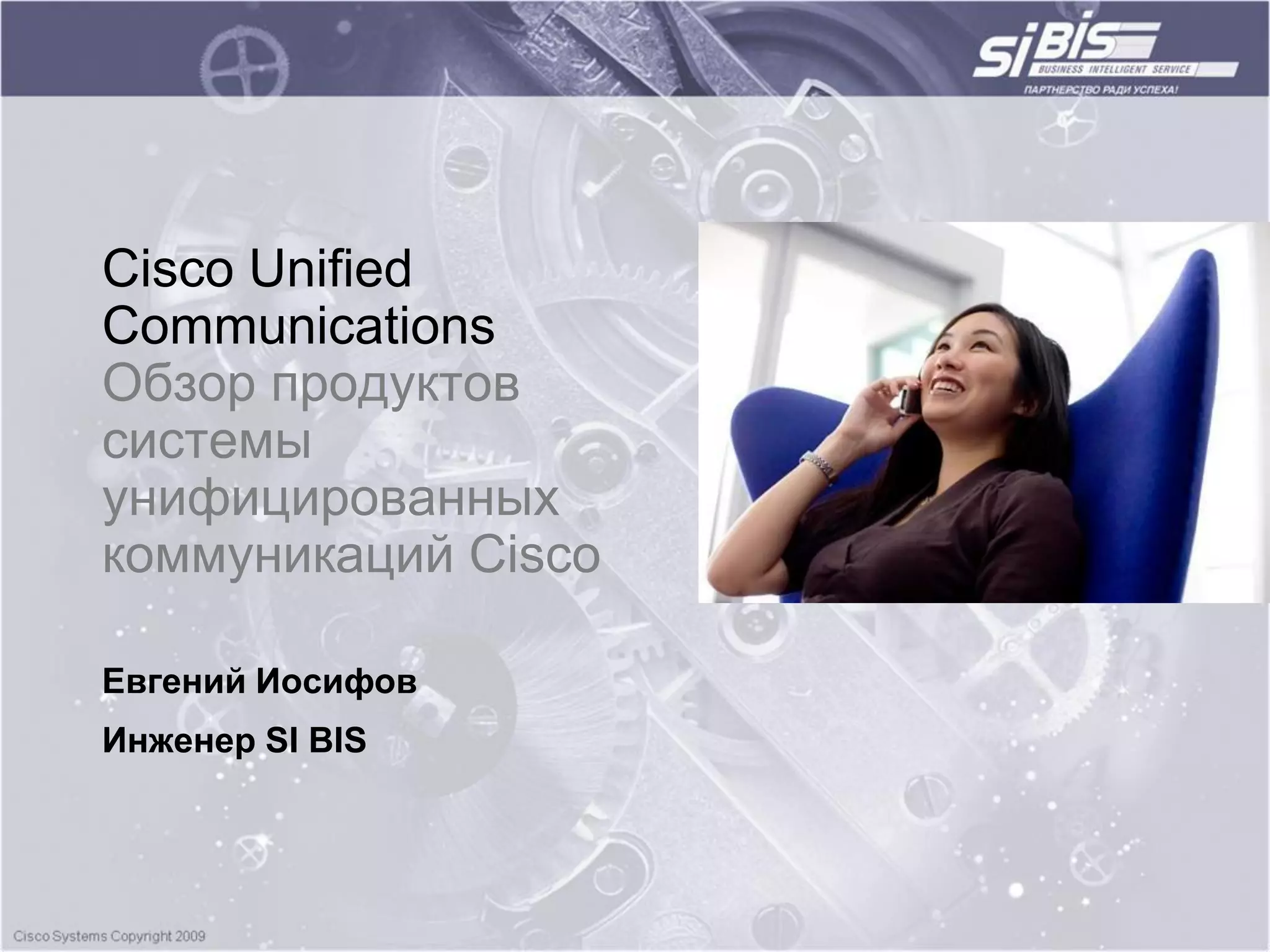 Документ представляет обзор продуктов и решений Cisco в области унифицированных коммуникаций, подчеркивая их значение для повышения эффективности бизнеса в условиях современных требований к коммуникациям. Описаны преимущества интеграции голосовой, видео и совместной работы, а также потенциальный рост производительности и снижения затрат для организаций. Также рассматриваются технологии, лицензирование и различные решения для разных сегментов рынка, включая малый и средний бизнес.