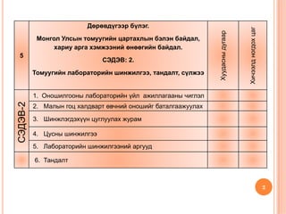 1. ОНОШИЛГООНЫ ЛАБОРАТОРИЙНҮЙЛ АЖИЛЛАГААНЫ ЧИГЛЭЛ