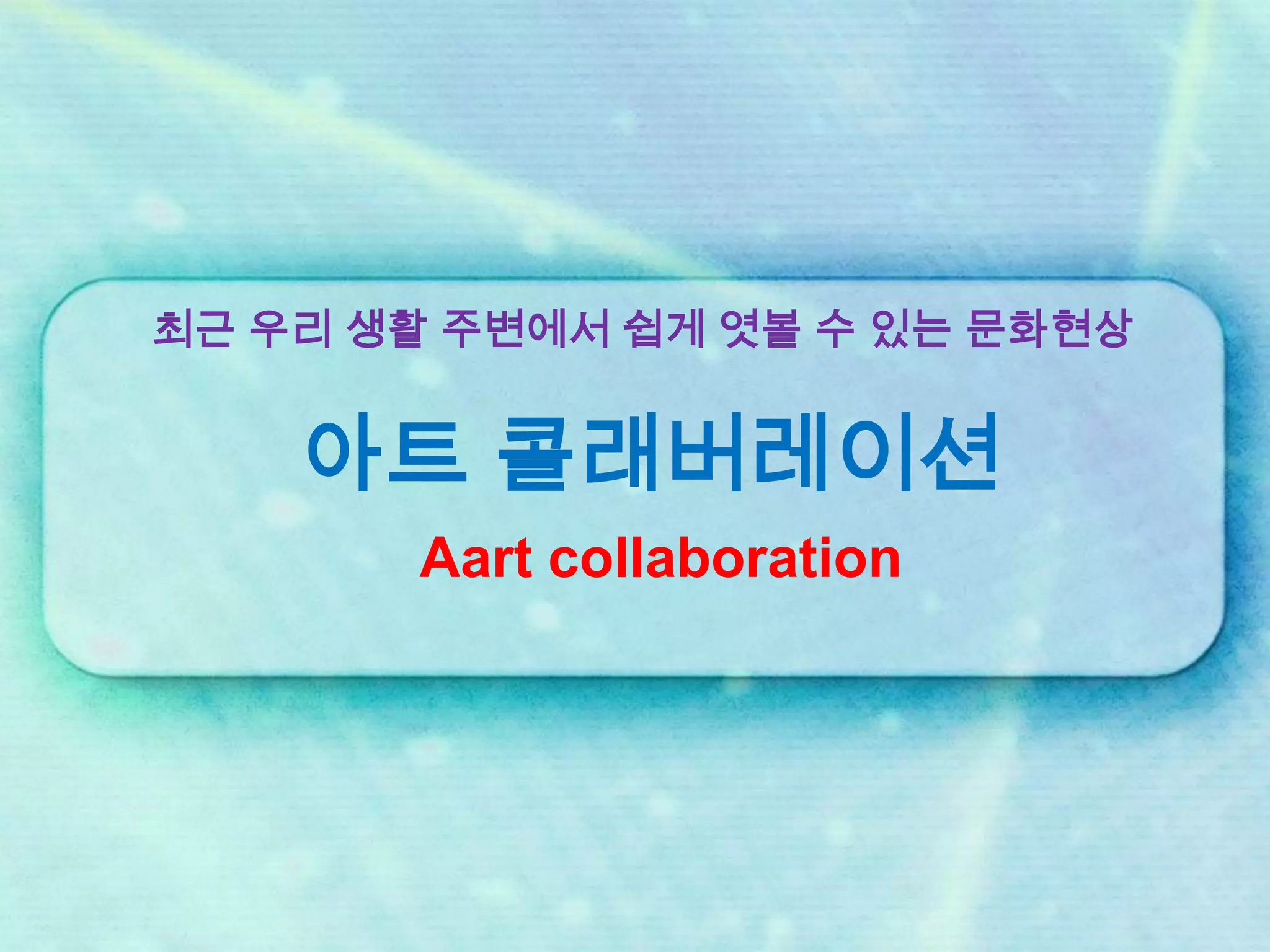 출증대를 위한 수단이 될 것 이다. 예술가에게는 콜래버레이션으로 명성