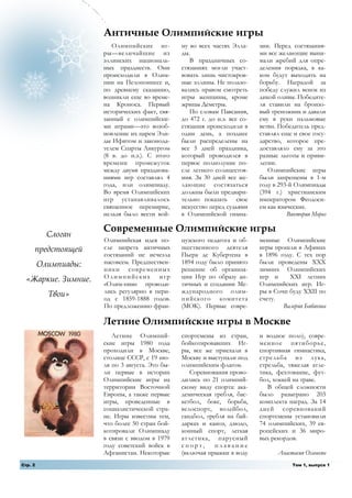 Специальный выпуск газеты «Большая перемена» освещает подготовку и проведение зимних Олимпийских игр 2014 года в Сочи, включая историю Олимпийских игр, символику, программу соревнований и достижения кубанских спортсменов. Рассматриваются значимые моменты, такие как выбор талисманов и разработка слогана Олимпиады. Также упоминаются планы мероприятий и конкурсов, связанных с Олимпийскими играми в школе.