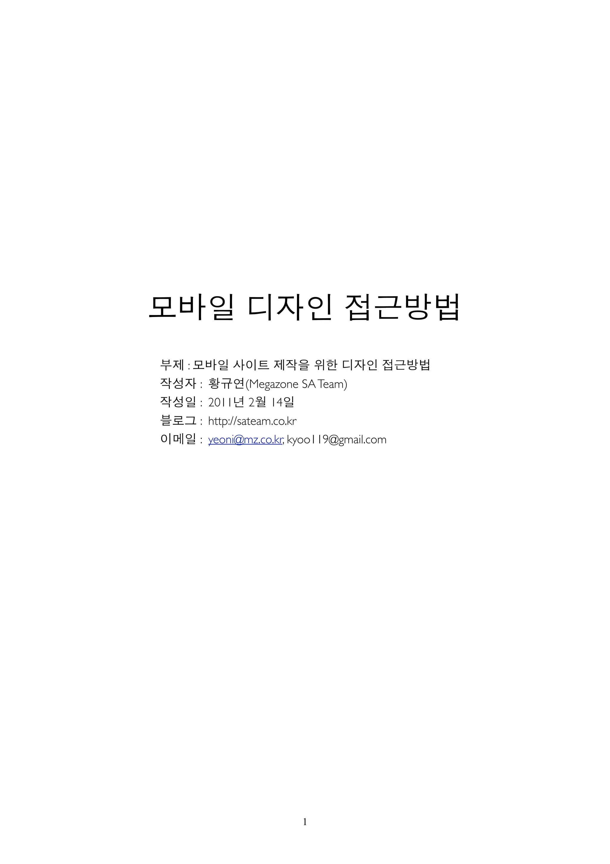 부제: 모바일 사이트 제작을 위한 디자인 접근방법