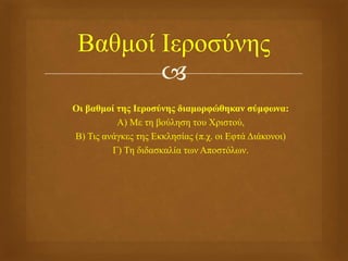 Οι βαθμοί τηςΙεροσύνης διαμορφώθηκαν σύμφωνα: