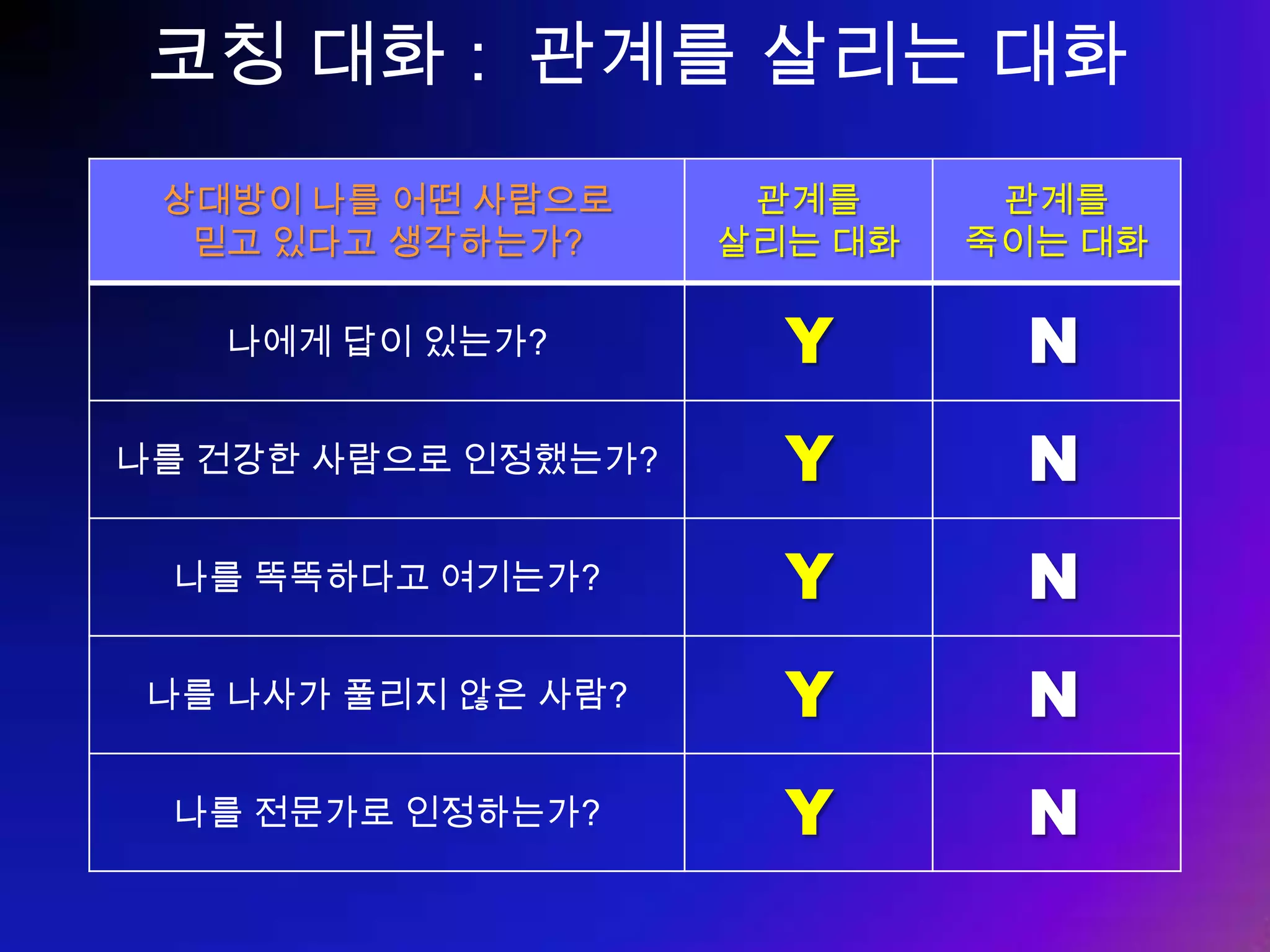 관계를 죽이는 대화 VS. 살리는 대화 oal : 목표는 ? eality : 현실은 ? ption : 옵션은 ? ill : 의지 ( 선택 ) 는 ? W O R G