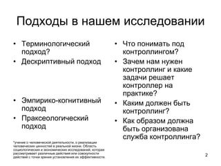 Документ исследует концепцию контроллинга на предприятиях, обсуждая различные подходы, необходимость и перспективы его развития в Казахстане. Он подчеркивает важность системного подхода и управления, акцентируя внимание на роли контроллеров в организации, планировании и контроле процессов на предприятиях. Также рассматриваются методы и задачи контроллеров для повышения эффективности управления и достижения целей компании.