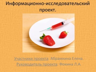 Проект исследует содержание пищевых добавок в продуктах питания, включая проведение социологического опроса среди 15 человек. Основное внимание уделяется использованию пищевых добавок и их влиянию на здоровье, а также анализу состава конкретных товаров, таких как Coca-Cola и жевательная резинка. Результаты опроса показали, что большинство участников обращают внимание на состав продуктов и осведомлены о влиянии добавок на здоровье.