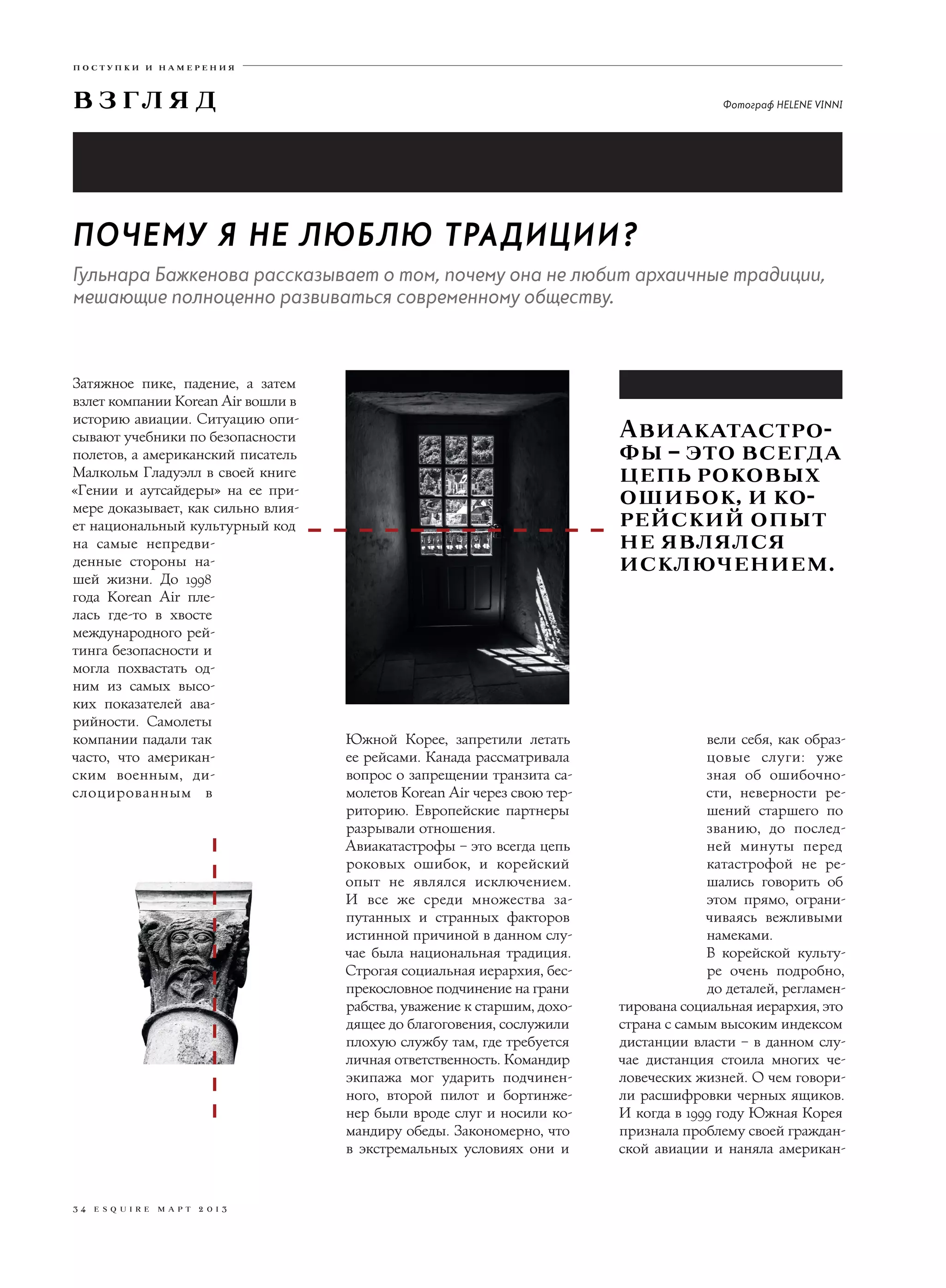 Документ рассматривает влияние традиций на современное общество, особенно в контексте авиационной безопасности в Корее и социальной иерархии в среднеазиатских сообществах. На примере компании Korean Air описывается, как жесткие культурные нормы и внутренние иерархии приводили к трагическим последствиям. Также подчеркивается, что традиции могут ограничивать личную свободу и развитие, в то время как отказ от них, хотя и труден, может привести к позитивным изменениям.