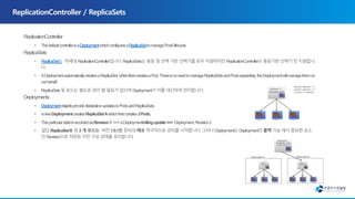 자동화된 롤아웃과 롤백 • 배포된 컨테이너의 원하는 상태를 서술할 수 있으며 현재 상태를 원하는 상태로 설정한 속도에 따라 변경할 수 있음.