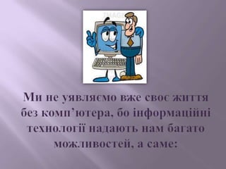 • Складно інтегруватикомп'ютер у поурочну структуру