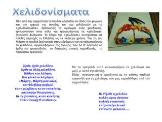 και τον ερχοµό τθσ άνοιξθσ και των χελιδονιών µε τα